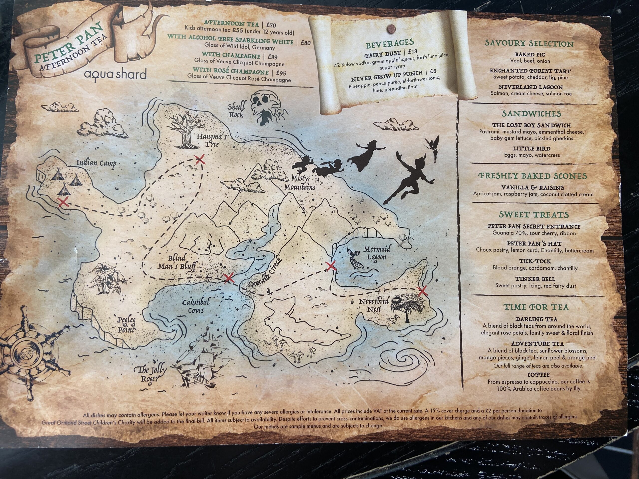 One of the special things we planned, with the help of our travel agent Erin Hoffman of Bluebird Sky Travel, was an afternoon Peter Pan-themed tea at Aqua Shard. It was fancy, creative, memorable and delicious with sweeping views of London from the Shard. The Adventure Tea, sausage roll, and desserts served on a pirate ship with “smoke” coming out of it were big highlights! I’ll cover more of this in my food-focused post from the trip. 😉