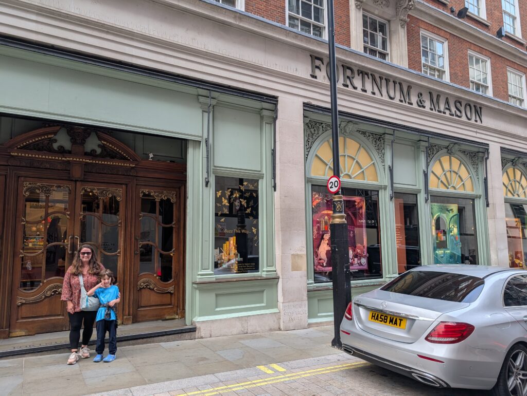Our first full day we took the hop on hop off bus tour to give Harrison a view of all the major sights of London. We drove through Kensington and around Hyde Park, my favorite area of the city, stopped at Hamely’s toy store, and saw Piccadilly Circus, Trafalgar Square, and the National Gallery before getting off to take some photos of Big Ben and the Houses of Parliament. London is a gorgeous city with such history and beautiful architecture. We walked across Tower Bridge, got back on the bus to go across the center of the city and then walked through St. James Park past Buckingham Palace to arrive at one of the top spots on my list to go to: Fortnum and Mason! I love this store filled with all the delicious teas and accompanying treats a tea lover could want.